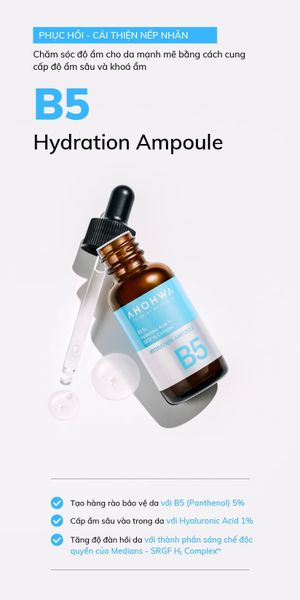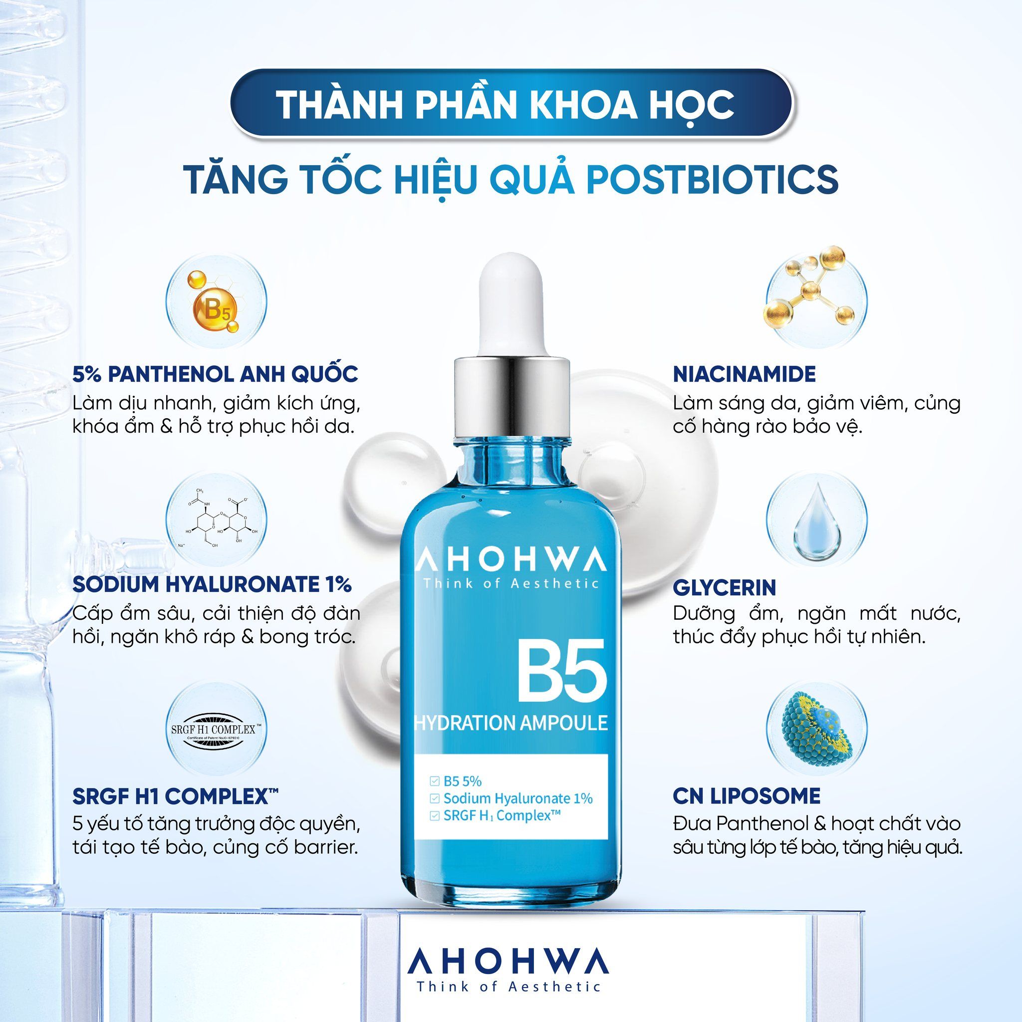 B5 Hydration Ampoule là tinh chất cấp ẩm và phục hồi sinh học đến từ thương hiệu dược mỹ phẩm Hàn Quốc AHOHWA, được thiết kế nhằm giải quyết tận gốc tình trạng da khô ráp, mất nước, yếu hàng rào bảo vệ và thiếu sức sống.
