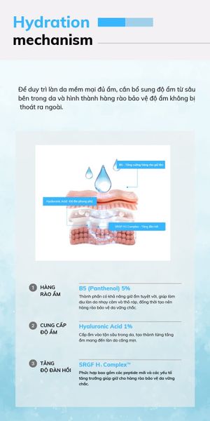 Khác với các serum chỉ cấp ẩm bề mặt, B5 Hydration Ampoule hoạt động theo hướng: