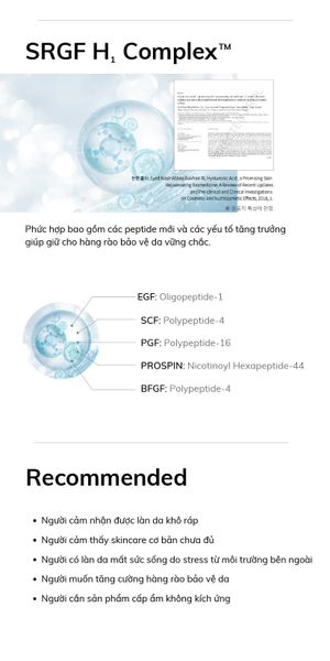 SRGF H₁ Complex™ là phức hợp peptide và yếu tố tăng trưởng sinh học độc quyền, giúp: